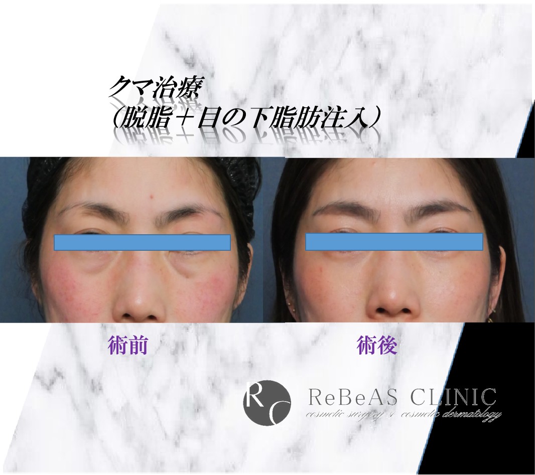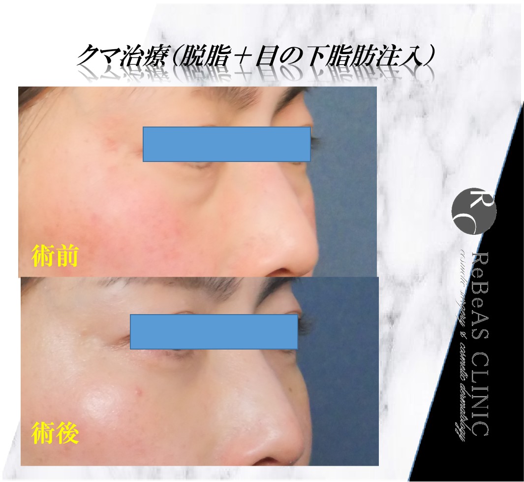 クマが改善することで印象がずいぶん変わります。目は隠していますがかなり綺麗に改善していると思います。