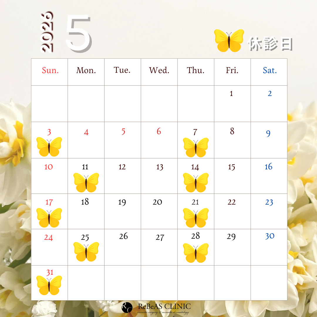 2026年5月の休診日|ReBeAS CLINIC(レビアスクリニック)|福岡市中央区の美容外科、美容皮膚科
